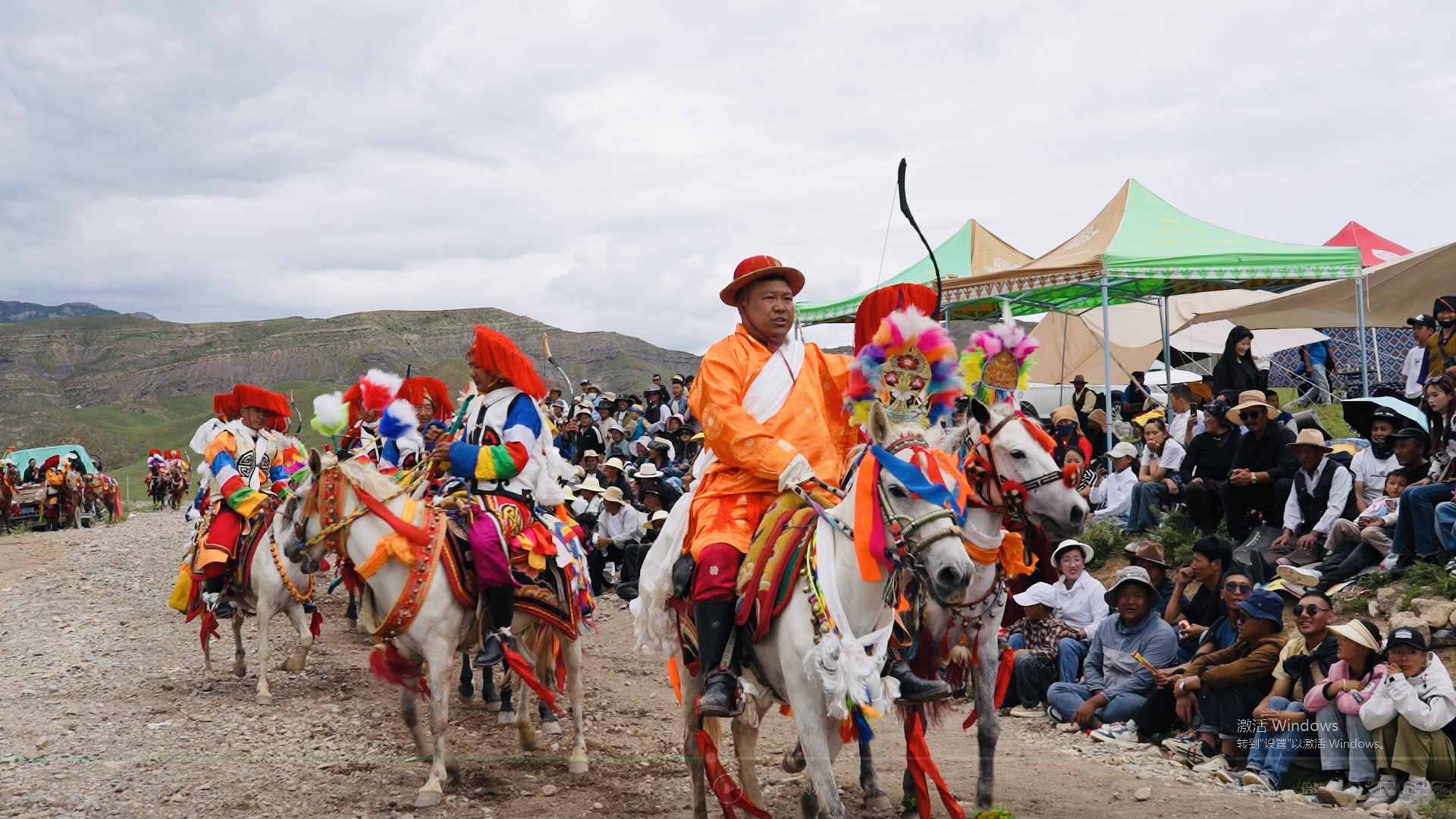 在林周縣邊交林鄉(xiāng)當(dāng)杰村“望果節(jié)”活動(dòng)現(xiàn)場(chǎng),隨著激昂的《運(yùn)動(dòng)員進(jìn)行曲》,當(dāng)杰村“平措林望果節(jié)”活動(dòng)拉開帷幕,38名馬術(shù)運(yùn)動(dòng)員、38名射箭運(yùn)動(dòng)員在2萬多名觀眾的歡呼聲中邁入現(xiàn)場(chǎng)。圖為賽馬選手參加射箭比賽。