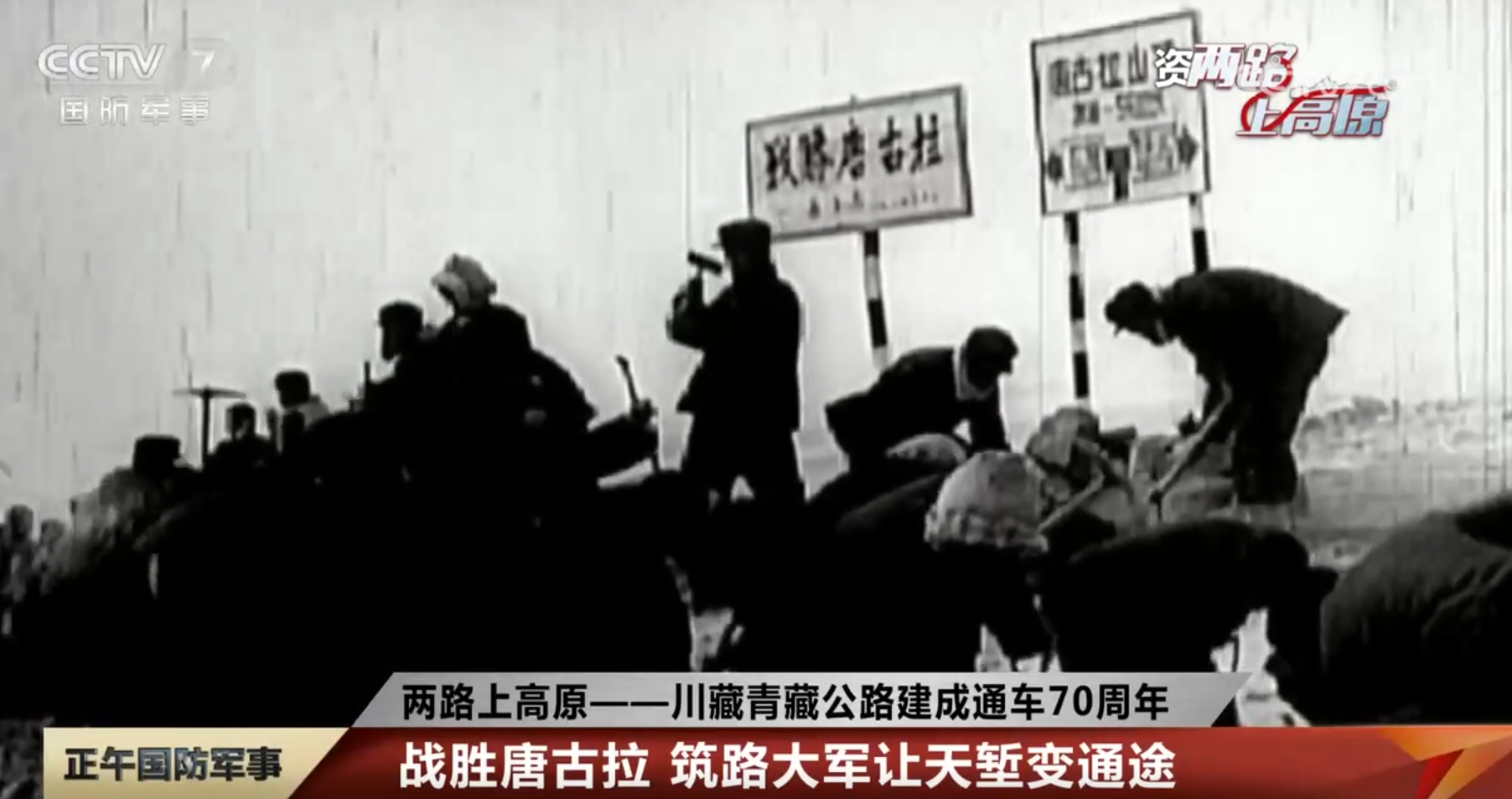 值得一提的是,這里是70年前筑路大軍修筑的公路翻山點,所有的施工區(qū)都在永凍雪線之上,工程隊在這里修筑出了世界上最高的一段公路。從格爾木修路開始到上唐古拉,其實已經(jīng)過去了4個多月,筑路隊員的體力消耗極大,他們的工具鋼鍬也磨成了月牙鏟,兩尺長的鐵鎬成了拳頭鎬,還要面對極高海拔的高寒缺氧、長期營養(yǎng)不良和高原病?!八酪惨^朝拉薩”,這是他們的誓言。就這樣,筑路大軍在唐古拉山鏖戰(zhàn)40天,用不屈的意志戰(zhàn)勝了唐古拉。