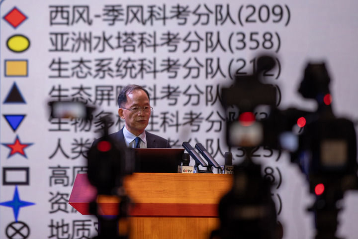 2024年8月18日,第二次青藏科考隊(duì)隊(duì)長姚檀棟院士在拉薩對本次科考10大任務(wù)的重要成果進(jìn)行集中發(fā)布。 新華社記者 姜帆 攝