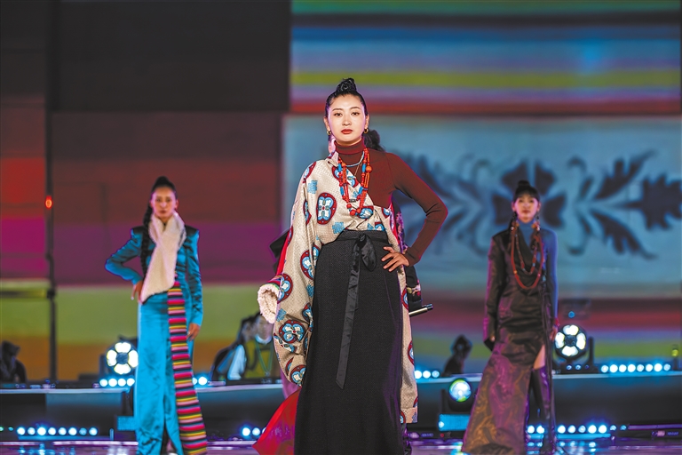 服裝秀表演《天上的羊卓雍措》在晚會(huì)中驚艷亮相。系列服飾完美融合了藏族傳統(tǒng)服飾元素與當(dāng)代時(shí)尚潮流,是由湖南省援藏工作隊(duì)株洲工作組的成員們以扎囊縣氆氌為原料創(chuàng)作而成。開幕式總導(dǎo)演李詞岳說(shuō):“為了更好地展現(xiàn)舞臺(tái)效果,我們團(tuán)隊(duì)克服高原反應(yīng),專門前往羊卓雍措拍攝服裝秀相關(guān)素材,希望通過(guò)這次服裝秀讓更多人了解山南、走進(jìn)山南?!?/p>