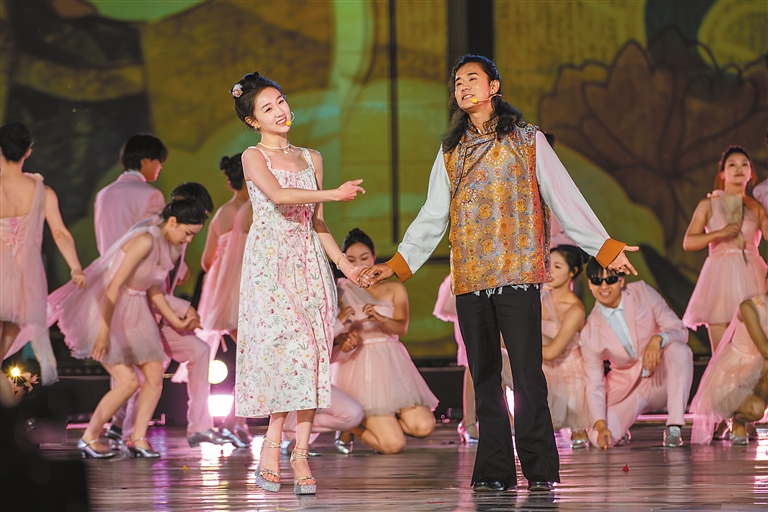 文藝演出開場(chǎng)和謝幕時(shí),煙花秀和無(wú)人機(jī)秀兩次閃耀夜空,與舞臺(tái)交相輝映,將現(xiàn)場(chǎng)氛圍一次次推向高潮。