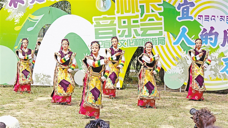 圖為在尼洋河畔濱江公園舉行的林卡主題音樂會演出現場。