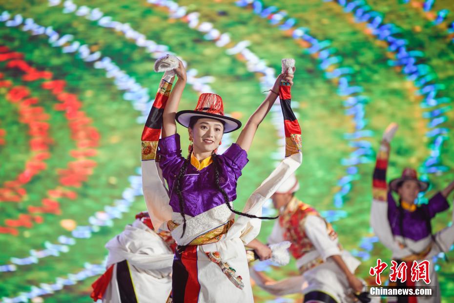 圖為2024年中國(guó)健身鍋莊舞大賽現(xiàn)場(chǎng)。中新社記者 貢嘎來(lái)松 攝