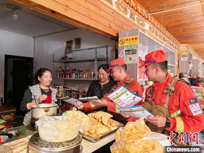 圖為消防員前往景區(qū)商鋪開(kāi)展防火宣傳。袁勇斌 攝