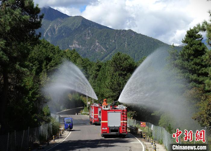 圖為開(kāi)展灑水增濕作業(yè)。西繞拉翁 攝