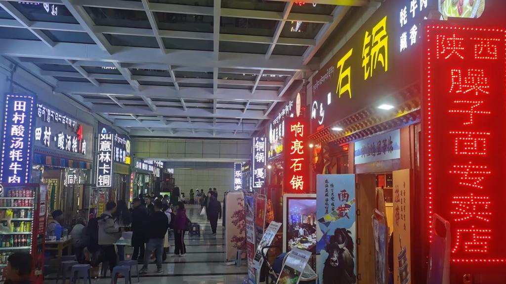 拉薩布達(dá)拉宮旁的吉彩美食街,各地游客在此品嘗風(fēng)味。新華社記者魏冠宇 攝