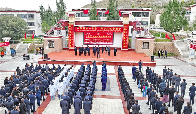 圖為康馬縣“格?;ㄩ_石榴紅·凝心鑄魂新征程”2024年民族團(tuán)結(jié)進(jìn)步宣傳活動(dòng)月啟動(dòng)儀式現(xiàn)場(chǎng)。