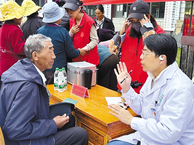 近年來(lái),“組團(tuán)式”援藏醫(yī)療人才與日喀則各族人民群眾結(jié)下了深情厚誼。 圖為上海市“組團(tuán)式”援藏醫(yī)療隊(duì)在日喀則市亞東縣上亞東鄉(xiāng)開展義診活動(dòng)。