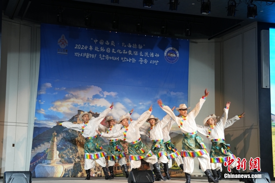 當(dāng)?shù)貢r(shí)間9月25日,“中國(guó)西藏·扎西德勒”2024年赴韓國(guó)文化和旅游交流活動(dòng)在首爾舉行。中國(guó)西藏自治區(qū)黨委書(shū)記王君正、中國(guó)駐韓國(guó)大使館臨時(shí)代辦方坤、韓國(guó)東亞文化中心院長(zhǎng)盧載憲,以及韓國(guó)社會(huì)各界友好人士、在韓留學(xué)生代表等出席活動(dòng)。圖為演出現(xiàn)場(chǎng)。