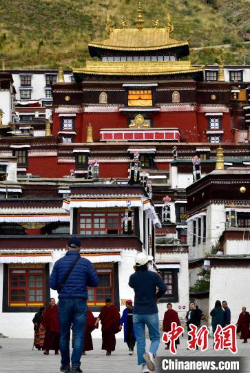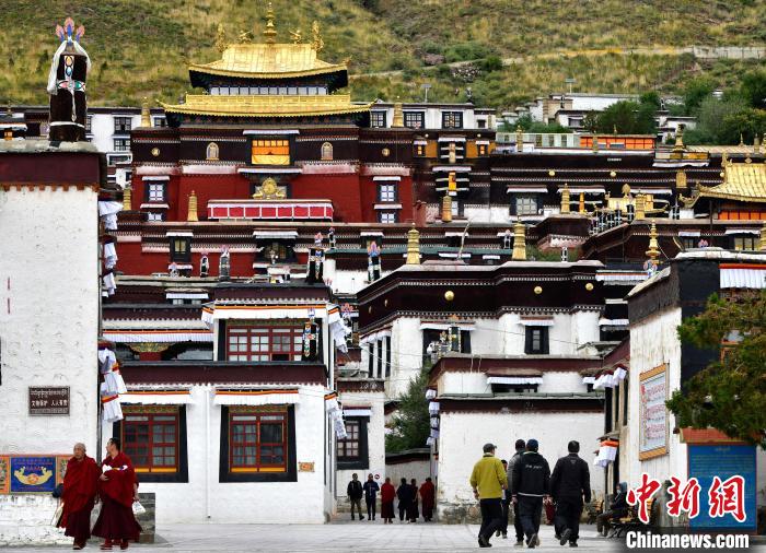 9月以來,西藏自治區(qū)日喀則市旅游熱度不減,始建于公元1447年的扎什倫布寺成為眾多中外游客的首選。圖為9月27日,游客在扎什倫布寺內(nèi)游覽參觀。中新社記者 李林 攝