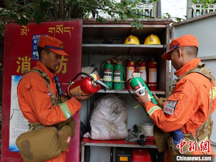 圖為檢查景區(qū)防火器材。巴宜區(qū)中隊(duì)供圖