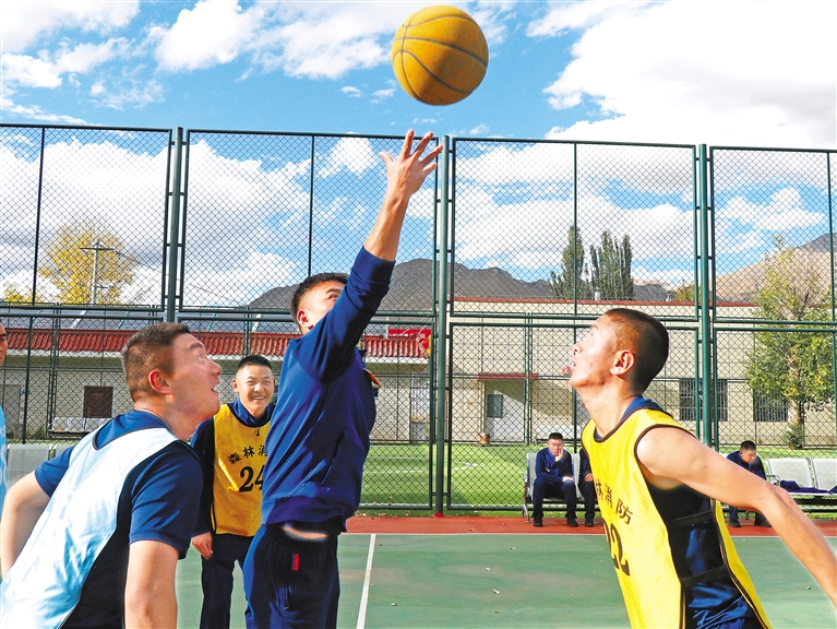 圖為西藏森林消防總隊(duì)新訓(xùn)大隊(duì)開展籃球比賽。記者 劉倩茹 攝