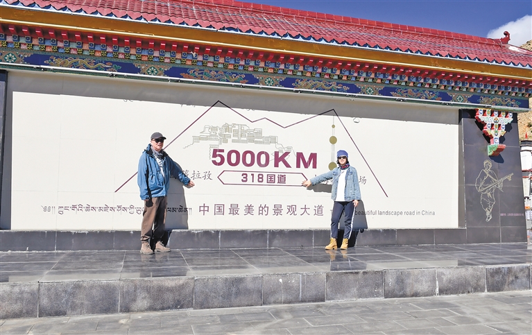圖為游客在日喀則市拉孜上海人民廣場(chǎng)合影留念。記者 王敏 攝