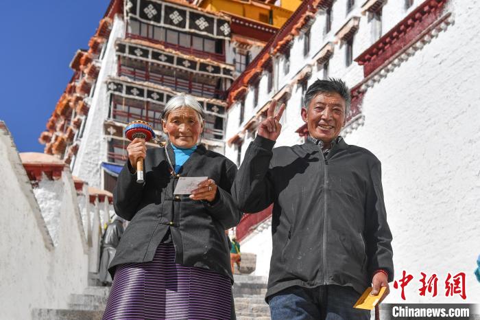 近日,西藏布達(dá)拉宮完成粉刷,呈現(xiàn)出別樣的美。粉刷后的宮墻在陽(yáng)光映照下,與藍(lán)天白云相襯,顯得莊嚴(yán)肅穆。布達(dá)拉宮的粉刷,不僅是為了讓其外觀更加美觀,更重要的是能對(duì)墻體建筑起到保護(hù)作用,增強(qiáng)其防雨功能。按照慣例,布達(dá)拉宮每年藏歷九月左右開始粉刷,并且要在藏歷九月二十二日“降神節(jié)”之前完成,期間有眾多民眾,游客積極參與。布達(dá)拉宮作為世界文化遺產(chǎn),是眾多進(jìn)藏游客必去的“打卡點(diǎn)”。圖為11月8日,來(lái)自西藏昌都的信眾準(zhǔn)備進(jìn)入布達(dá)拉宮。中新社記者 貢確 攝