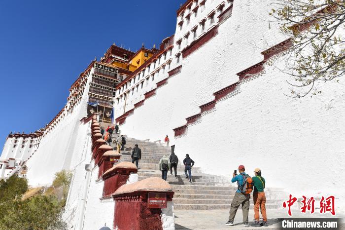 近日,西藏布達(dá)拉宮完成粉刷,呈現(xiàn)出別樣的美。粉刷后的宮墻在陽(yáng)光映照下,與藍(lán)天白云相襯,顯得莊嚴(yán)肅穆。布達(dá)拉宮的粉刷,不僅是為了讓其外觀更加美觀,更重要的是能對(duì)墻體建筑起到保護(hù)作用,增強(qiáng)其防雨功能。按照慣例,布達(dá)拉宮每年藏歷九月左右開始粉刷,并且要在藏歷九月二十二日“降神節(jié)”之前完成,期間有眾多民眾,游客積極參與。布達(dá)拉宮作為世界文化遺產(chǎn),是眾多進(jìn)藏游客必去的“打卡點(diǎn)”。圖為11月8日,游客參觀布達(dá)拉宮。中新社記者 貢確 攝