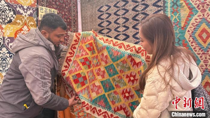 圖為拉薩民眾正在選購(gòu)巴基斯坦的手工羊毛地毯。澤塔雍措 攝