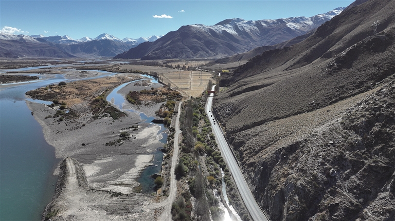 G318被稱為“中國景觀大道”,沿途壯麗絕美的風(fēng)光令人心醉神迷。恰風(fēng)和日麗的一天,記者一行驅(qū)車前往G318曲水段與達孜段。一路層林盡染,落葉飄飛,如詩如畫,美不勝收。