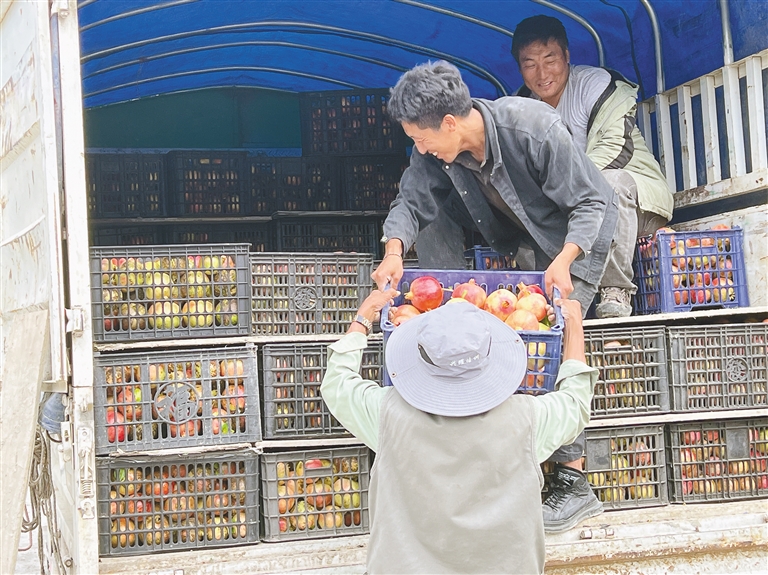 圖為昌西村果農將石榴裝車,準備外運銷售?!∮浾摺鳌⊥ㄓ崋T 吳子偉 攝