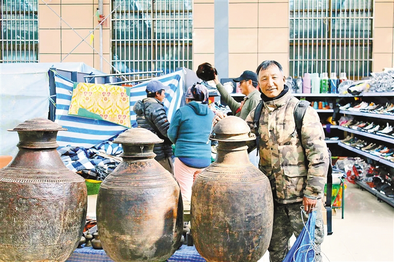 尼泊爾商戶加央在里孜口岸臨時(shí)交易市場。通訊員 西繞拉珍 記者 頓珠扎西 攝