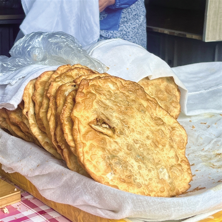 如果你擔心一份蓋澆飯吃不飽,可以提前在位于同一條巷子的“爺爺奶奶肉餅”買上一個肉餅。這家店同樣是城關(guān)區(qū)的老店,深受拉薩群眾的喜愛。肉餅脆而不油,面粉和肉餡的香氣完美融合。建議上午12:00前去,這家店鋪通常賣完肉餅就早早關(guān)門啦!
