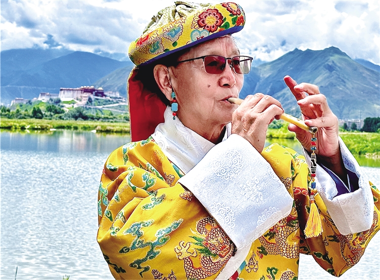 交談中,時間仿佛回到了1963年。當(dāng)時年僅13歲的次旦由國家民委招生,被保送到北京的中央民族學(xué)院,開始系統(tǒng)學(xué)習(xí)民族器樂專業(yè),專攻竹笛演奏,從此走上了藝術(shù)之路?!拔覀円黄鹑ケ本W(xué)習(xí)的共有24人,當(dāng)時大家年紀(jì)還小,不知道去北京學(xué)習(xí)意味著什么,后來才慢慢了解到我們身上承擔(dān)著藏族民族器樂的傳承與推廣的責(zé)任,所以大家都很刻苦地學(xué)習(xí)和訓(xùn)練。”次旦說。