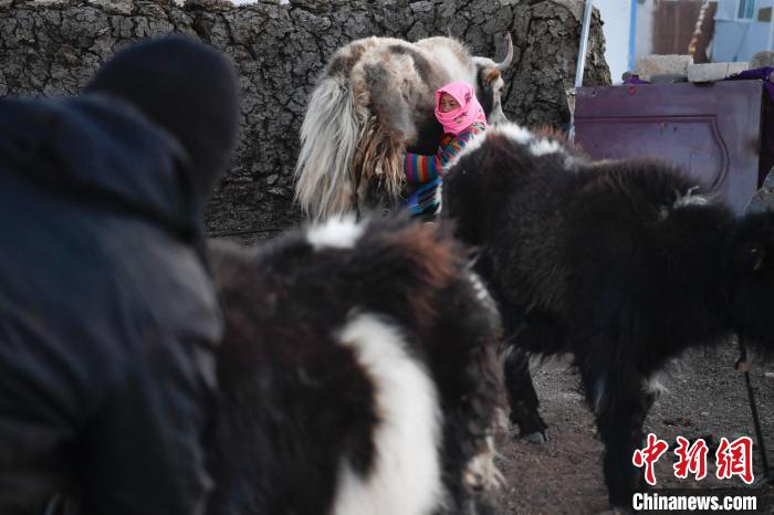 12月12日,西藏自治區(qū)那曲市安多縣帕那鎮(zhèn)牧民土巴卓瑪準備去擠牦牛奶。中新社記者 貢嘎來松 攝