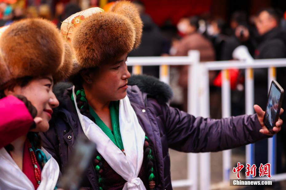 12月15日即藏歷十月十五日是藏族傳統(tǒng)的節(jié)日“白來日追”,俗稱“仙女節(jié)”、“白拉姆節(jié)”等。相傳藏傳佛教最高護法神之一班丹拉姆的女兒白拉姆,不顧母親的反對與赤尊贊私定終身,班丹拉姆一怒之下將赤尊贊趕到拉薩河南岸,規(guī)定二人僅每年的藏歷十月十五日相見。圖為信眾在大昭寺自拍留念。