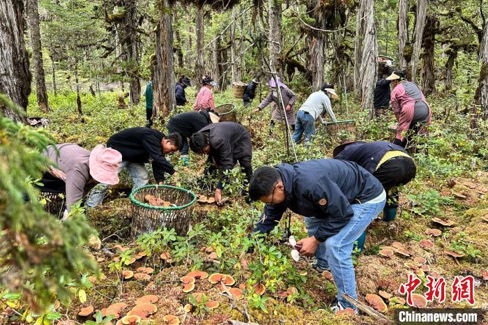 資料圖為尼瑪家庭農(nóng)場帶動周邊農(nóng)牧民在林間仿野生種植的靈芝進入采摘期。受訪者 供圖