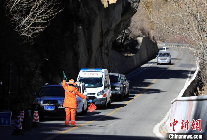 12月16日,西藏自治區(qū)林芝公路事業(yè)發(fā)展和應(yīng)急保障中心(工布江達(dá)養(yǎng)護(hù)段)道路養(yǎng)護(hù)工人及時清除川藏公路上的落石,保障道路暢通。該養(yǎng)護(hù)段擔(dān)負(fù)著川藏公路沿線工布江達(dá)縣路段的養(yǎng)護(hù)管理、應(yīng)急搶險等工作,包括路面修補(bǔ)、清理邊溝、維護(hù)交通安全設(shè)施等日常養(yǎng)護(hù)工作。圖為養(yǎng)護(hù)工人引導(dǎo)往來車輛。中新社記者 王磊 攝