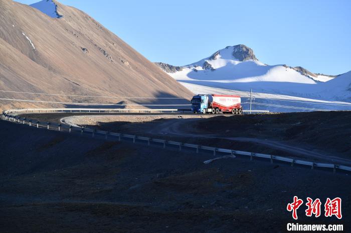 圖為運(yùn)輸車輛行駛在青藏公路上?!∝暣_ 攝