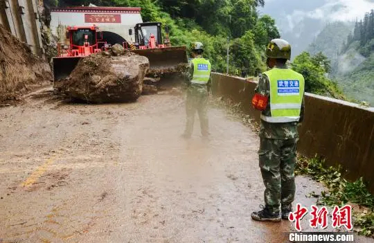 圖為武警官兵處理路基垮塌險情現場。受訪單位提供
