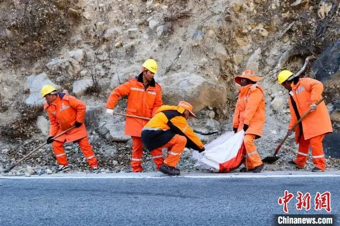 圖為道班工人清理公路上的落石。中新社記者 貢嘎來松 攝