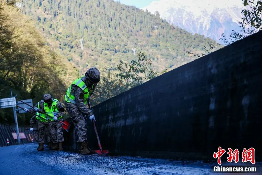 圖為武警官兵日常公路養(yǎng)護。中新社記者 薛蒂 攝