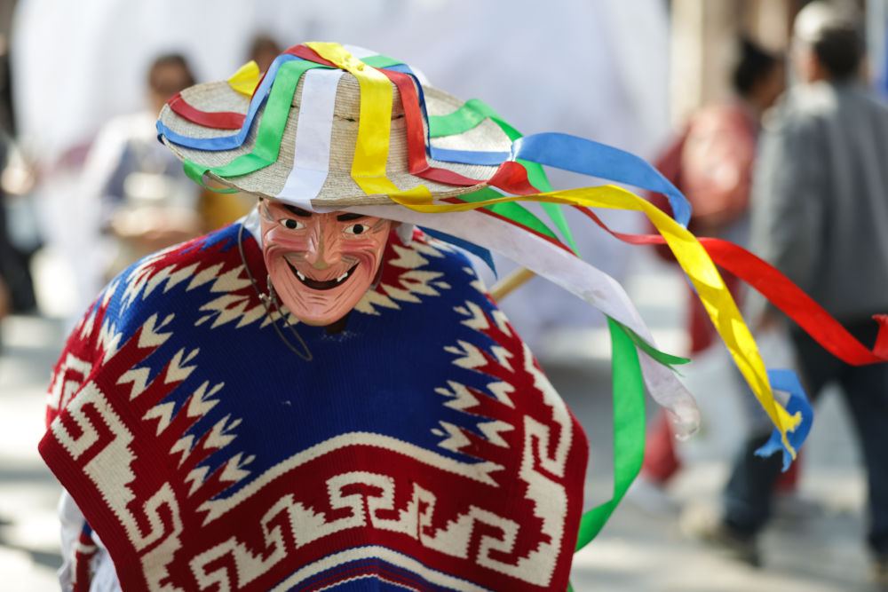 墨西哥面具舞中的“老者之舞”是墨西哥米卻肯州最具代表性的傳統(tǒng)舞蹈之一,起源于普列佩查原住民文化。這種舞蹈以其充滿活力的表現(xiàn)形式和文化象征而聞名,據(jù)說(shuō)發(fā)展自墨西哥獨(dú)立之前人們向心目中的神明祈求豐收的儀式。在木屐的聲響與裝飾草帽的彩色絲帶互相映襯之下,每當(dāng)老者之舞上演,米卻肯州帕茨夸羅的廣場(chǎng)便化身為一座承載古老記憶的舞臺(tái)。