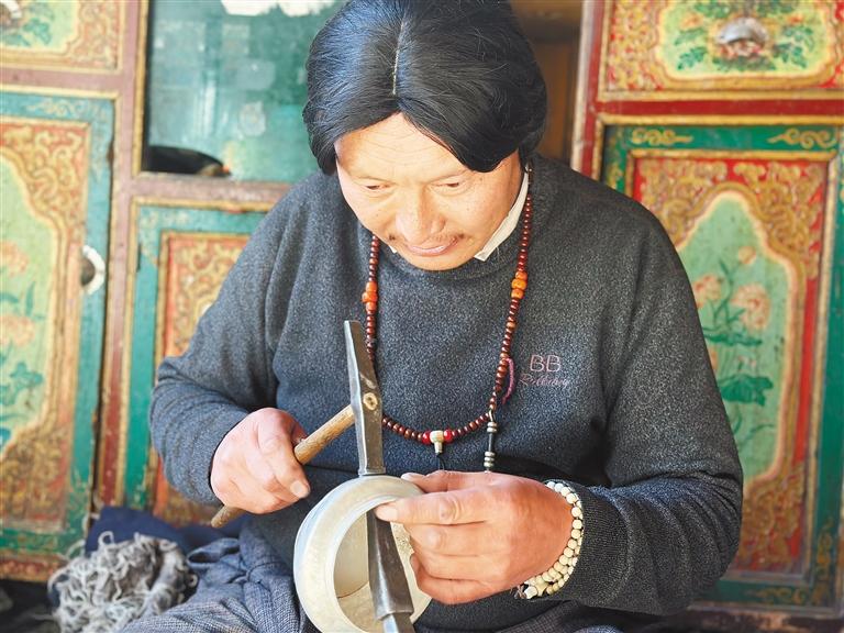 在嘎瑪鄉(xiāng),傳承的信念猶如種子般深深地植入進(jìn)了每一個(gè)技師的心中,并且不斷生根發(fā)芽。如今,像丁巴曲培、嘎瑪次仁這樣的家庭式手工作坊在嘎瑪鄉(xiāng)多達(dá)200余個(gè),并且還在不斷發(fā)展壯大。這一切,離不開世代傳承人付出與堅(jiān)守,更離不開黨和政府的大力支持。