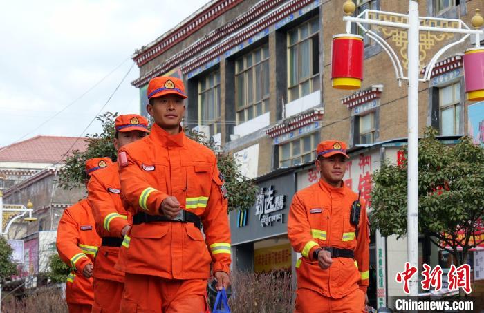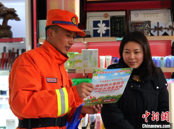 圖為西藏森林消防總隊(duì)林芝支隊(duì)巴宜區(qū)中隊(duì)元旦假期防火專(zhuān)項(xiàng)行動(dòng)中開(kāi)展流動(dòng)宣傳。西繞拉翁 攝