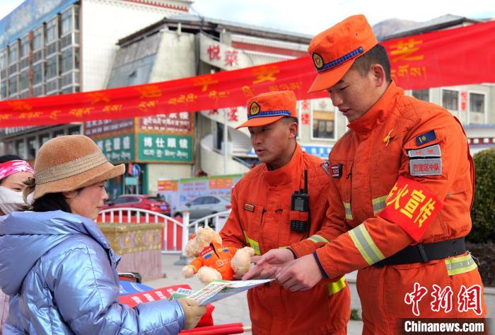圖為西藏森林消防總隊(duì)林芝支隊(duì)巴宜區(qū)中隊(duì)元旦假期防火專(zhuān)項(xiàng)行動(dòng)中發(fā)放禮品。西繞拉翁 攝