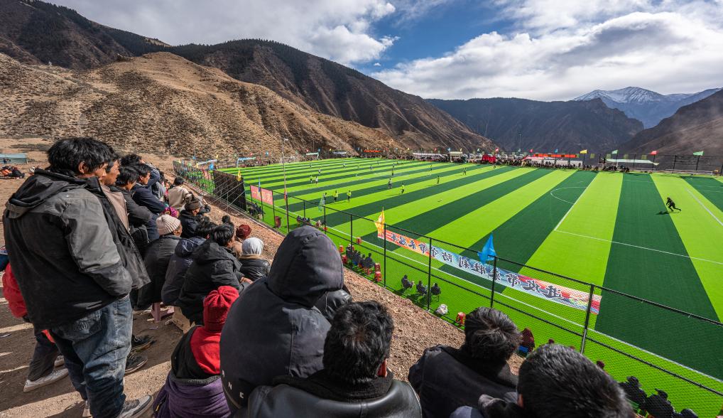 在馬利鎮(zhèn)“云中球場”,當(dāng)?shù)厝罕娫谇蛸愰_幕式上表演舞蹈(1月2日攝)。新華社記者 丁增尼達(dá) 攝