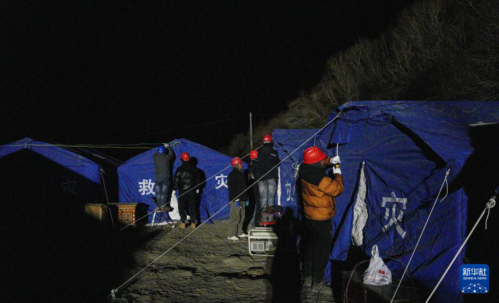1月7日,在定日縣長所鄉(xiāng)集中安置點,工作人員在保障電力供應(yīng)。新華社記者 晉美多吉 攝