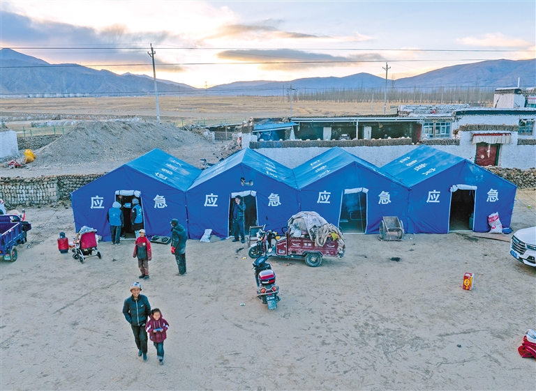 西藏森林消防總隊特勤大隊迅速行動,于1月7日18時許抵達震中曲洛鄉(xiāng)帕嘎村,開展搶救群眾財產(chǎn),架設(shè)帳篷等工作。