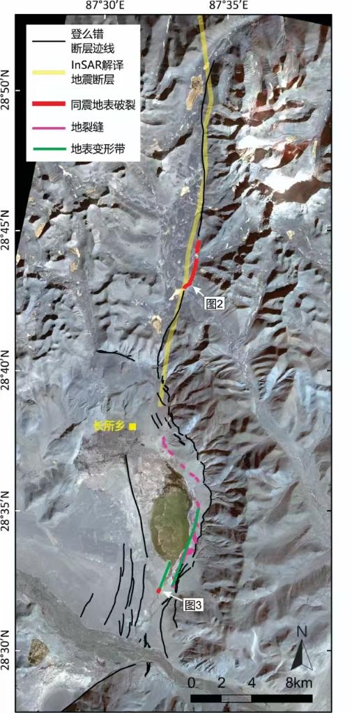 中國(guó)地震局地質(zhì)研究所、四川省地震局聯(lián)合調(diào)查團(tuán)隊(duì)1月9日在西藏日喀則定日縣長(zhǎng)所鄉(xiāng)雜村南發(fā)現(xiàn)定日地震同震地表變形帶,同震形變帶延伸超過10千米。