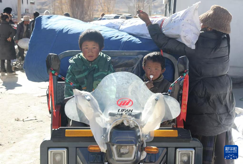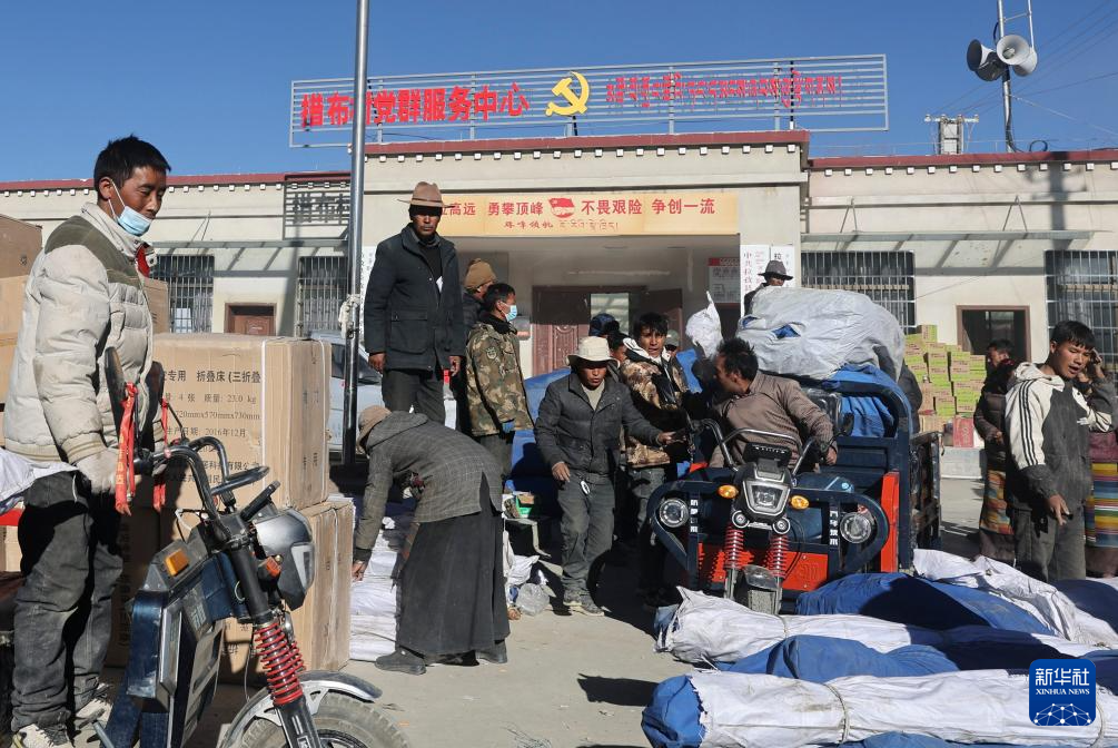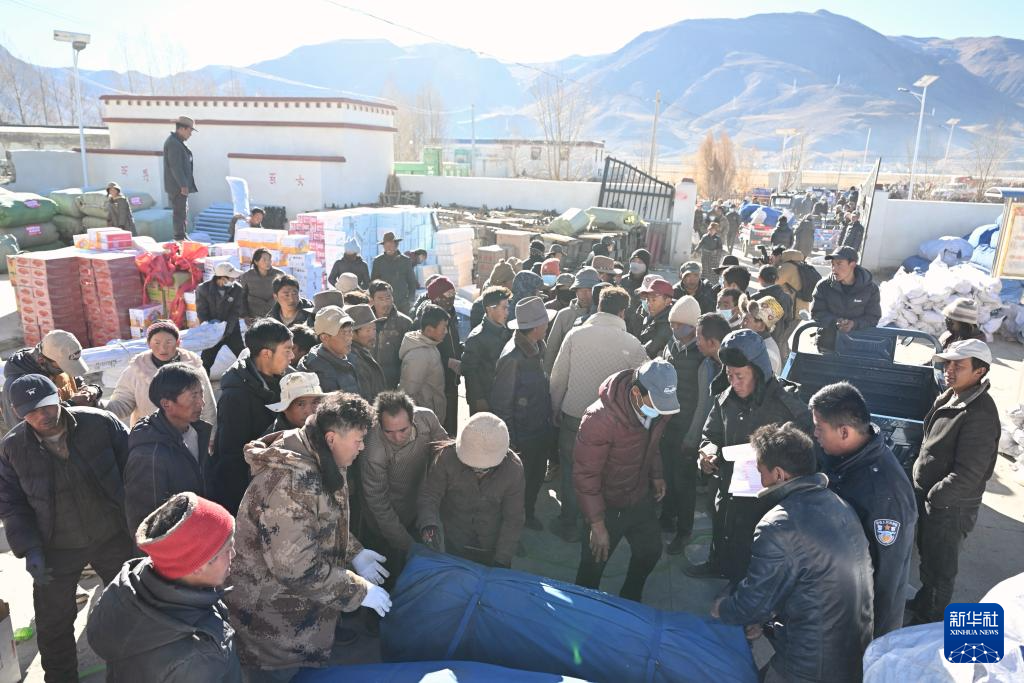 1月9日,受災(zāi)群眾在措布村村委會(huì)領(lǐng)取救災(zāi)物資。新華社記者 李響 攝