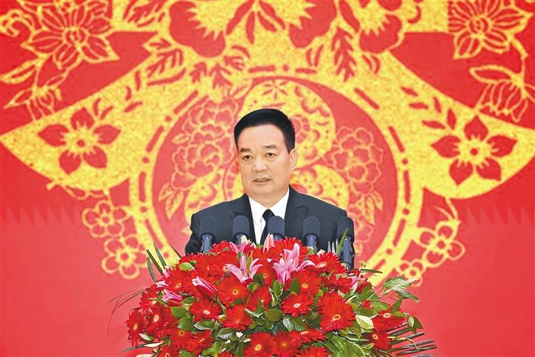 1月26日下午,西藏自治區(qū)2025年春節(jié)、藏歷新年團拜會在拉薩舉行。自治區(qū)黨委書記王君正出席并致辭。西藏日報記者 旦增西旦 攝