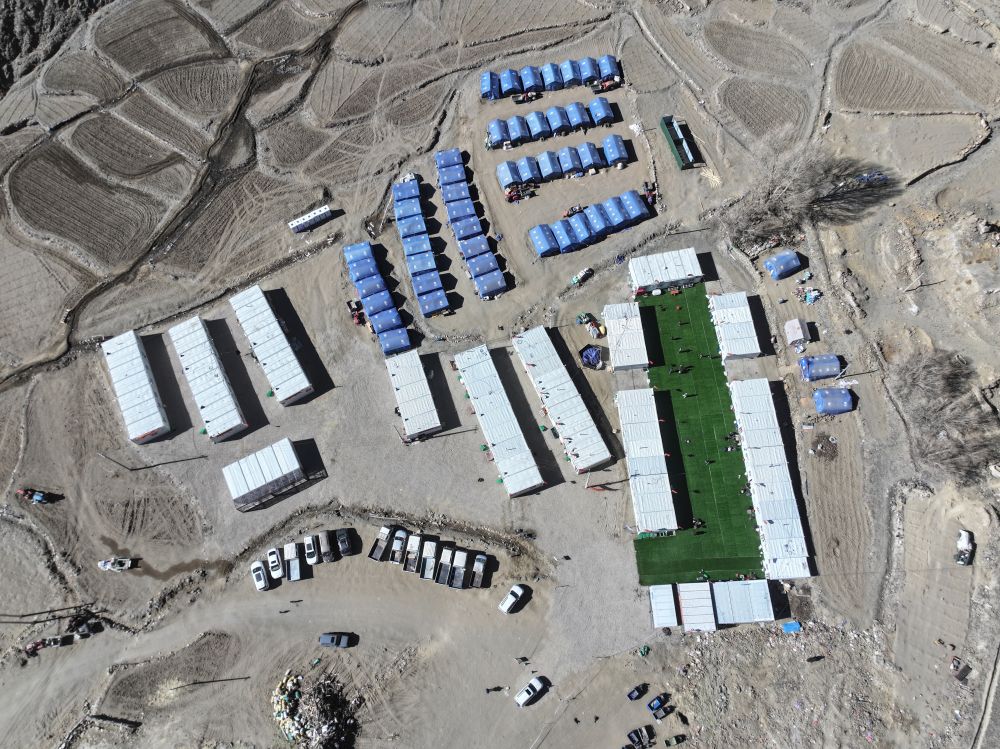 1月28日,定日縣長所鄉(xiāng)古榮村安置點(diǎn),所有受災(zāi)群眾已搬入板房(無人機(jī)照片)。新華社記者 洛卓嘉措 攝