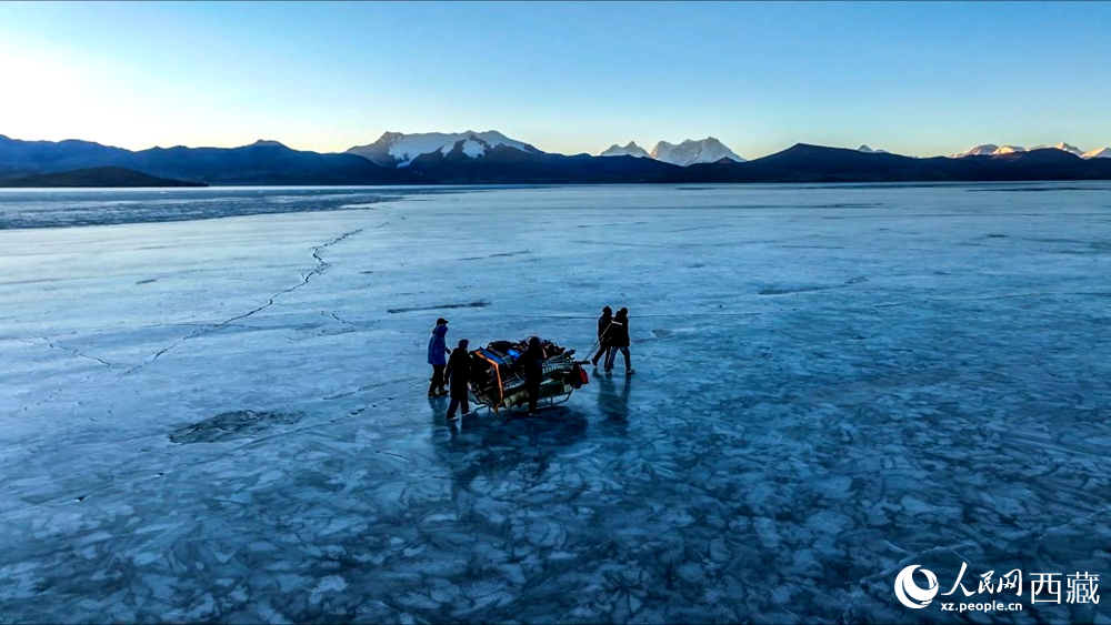 普莫雍錯(cuò)“冰上趕羊”,是當(dāng)?shù)啬撩袷来鄠鞯墓爬现腔?。每年冬季,由于推瓦村海拔高、夏季短,草場無法為羊群提供充足的過冬飼料。因此,每年高原最冷的時(shí)候,推瓦村牧民會把羊群趕到普莫雍錯(cuò)水草豐茂的湖心島,依靠島上的草料度過最寒冷的冬期。