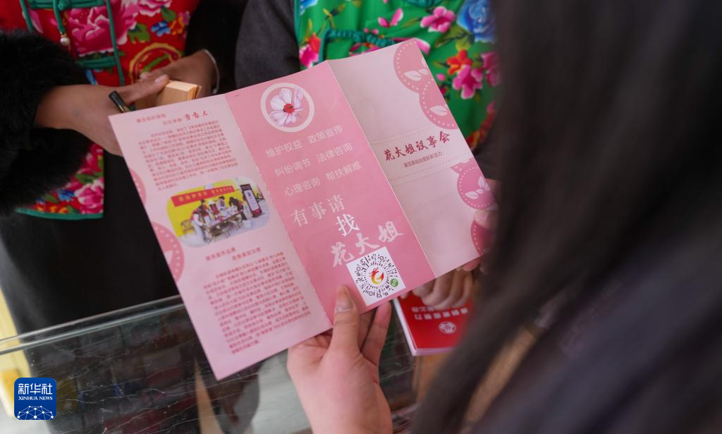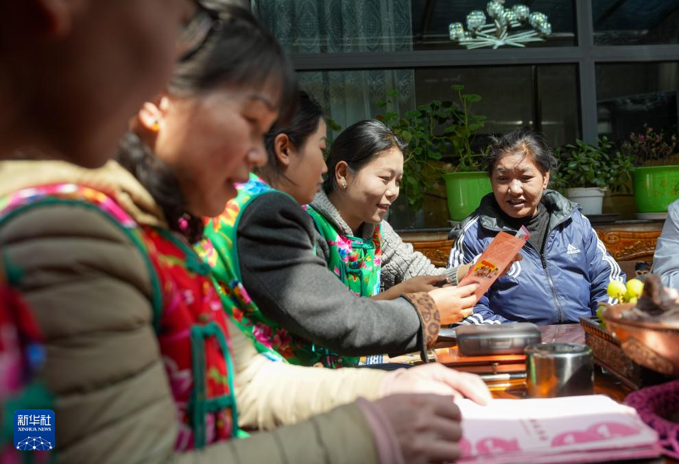“花大姐”向轄區(qū)群眾宣傳議事會(huì)各種惠民事項(xiàng)(3月6日攝)。新華社記者 晉美多吉 攝