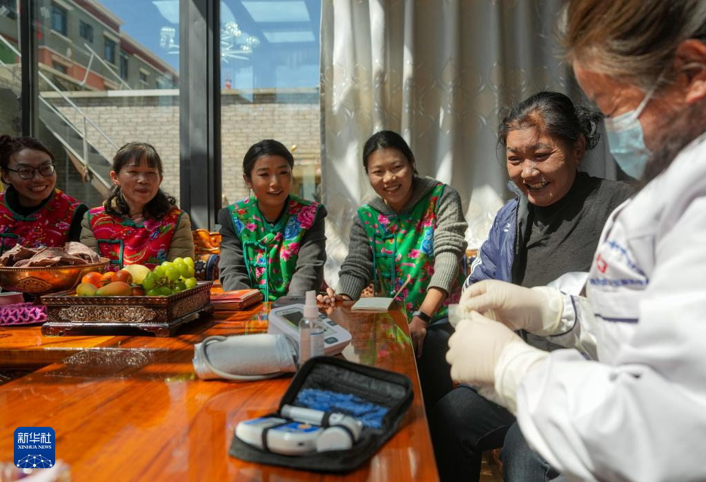 “花大姐”聯(lián)合村醫(yī)為群眾檢查身體(3月6日攝)。新華社記者 晉美多吉 攝
