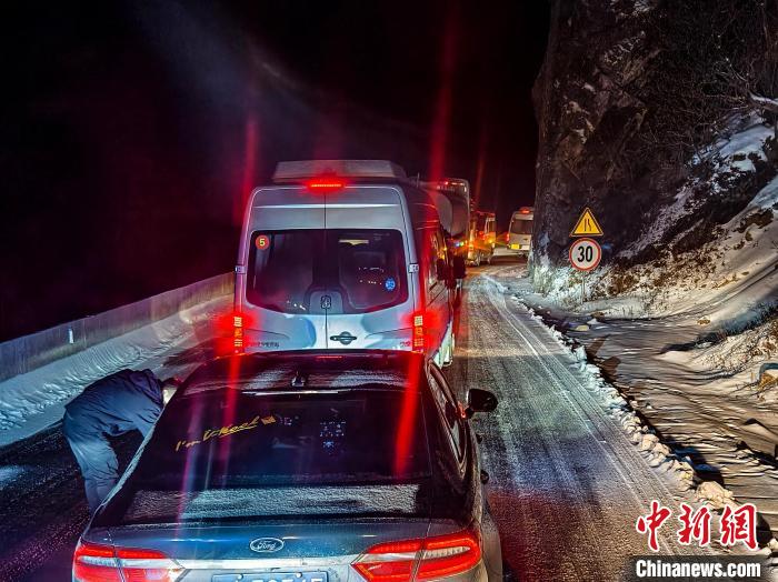 當(dāng)夜幕降臨之時(shí),大風(fēng)夾著雪粒呼嘯不止,山上的氣溫也越來越低,部分司乘人員出現(xiàn)焦慮,官兵們一邊耐心地安撫司乘人員焦急的情緒,一邊有條不紊地指揮車輛緩緩挪動(dòng)。