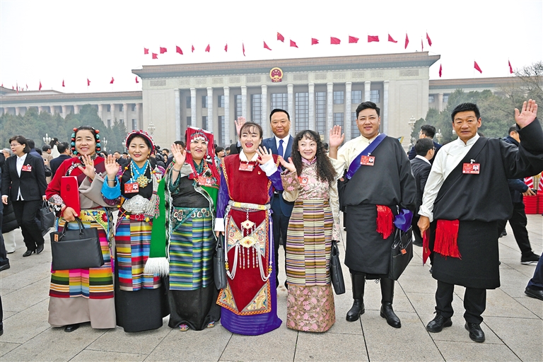 圖為閉幕會(huì)結(jié)束后,西藏全國(guó)人大代表信心滿懷走出會(huì)場(chǎng)。記者 旦增西旦 攝