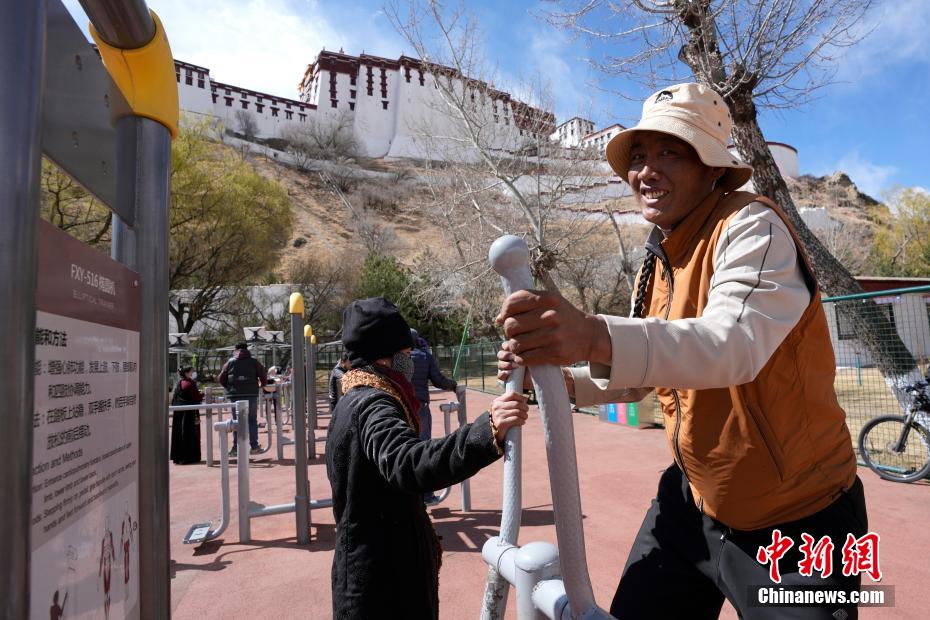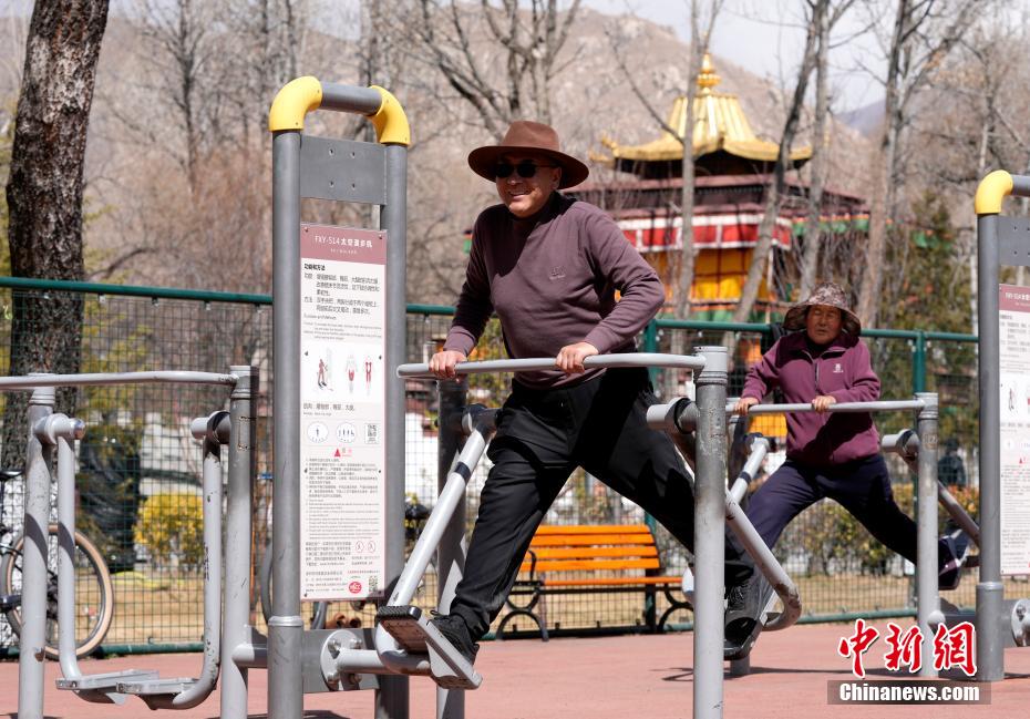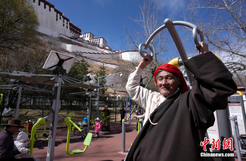 3月13日,民眾在西藏拉薩宗角祿康公園健身。坐落于布達(dá)拉宮腳下的宗角祿康公園是拉薩民眾戶外活動(dòng)的一大場(chǎng)所。隨著3月春回拉薩,大家來到公園散步、健身,一片春意盎然的景象。中新社記者 李林 攝